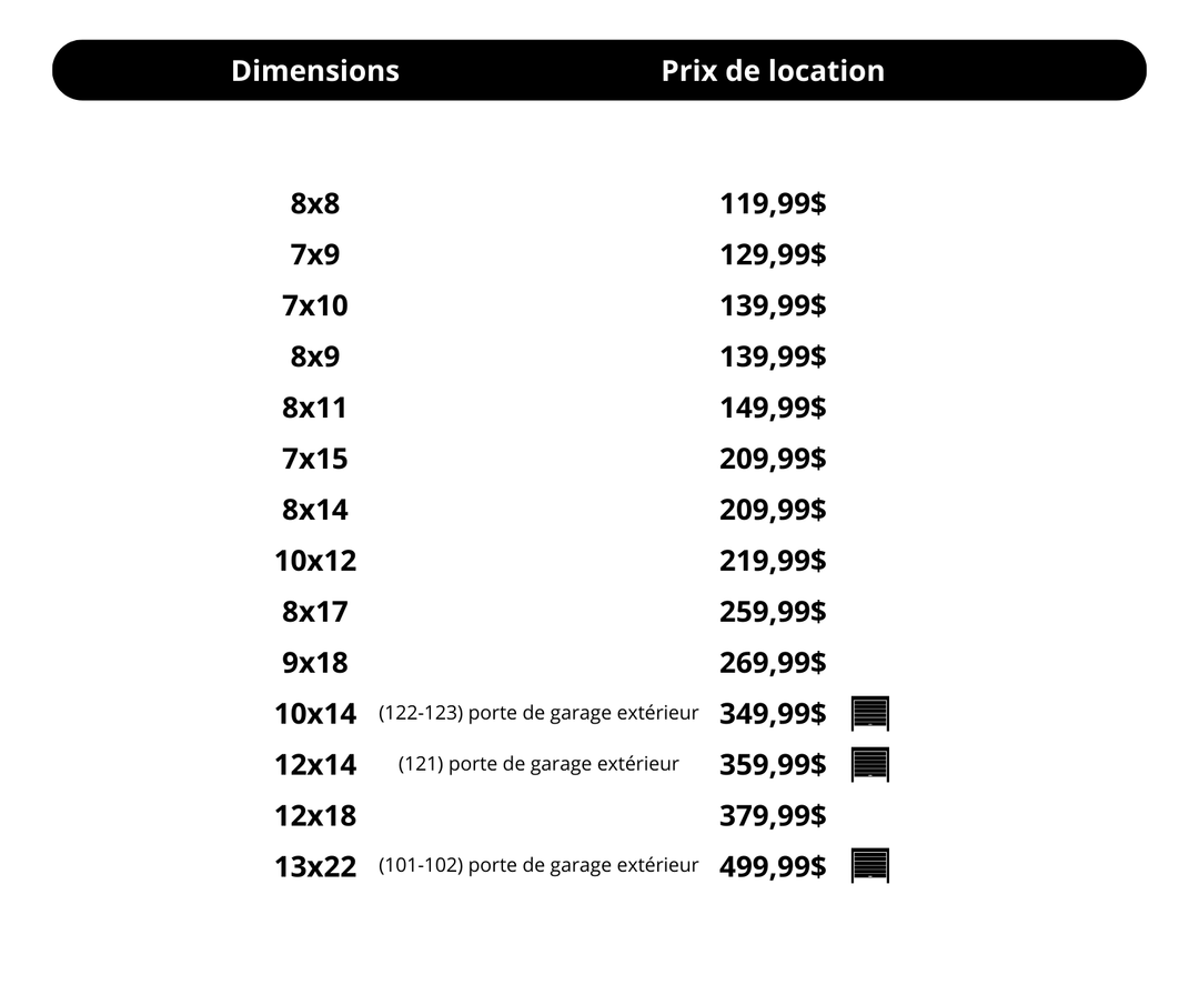 Découvrez nos mini-entrepôts à prix compétitifs! Que vous ayez besoin d’un petit espace pour quelques boîtes ou d’un grand espace pour entreposer vos meubles, nous avons la solution idéale pour vous.